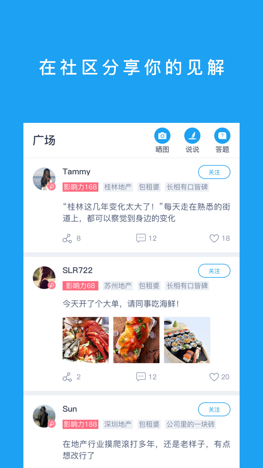 1、汇集大量的房地产红人,汇集了大量的房地产红人,关注即可随时查看动态;
