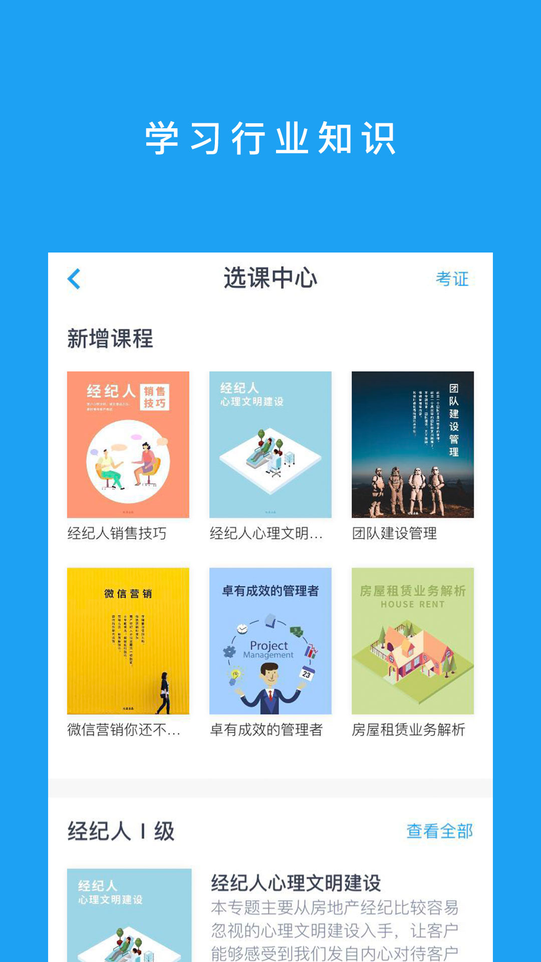 3、课程学习,进入课程页面找到自己想要的房产知识课程并学习;