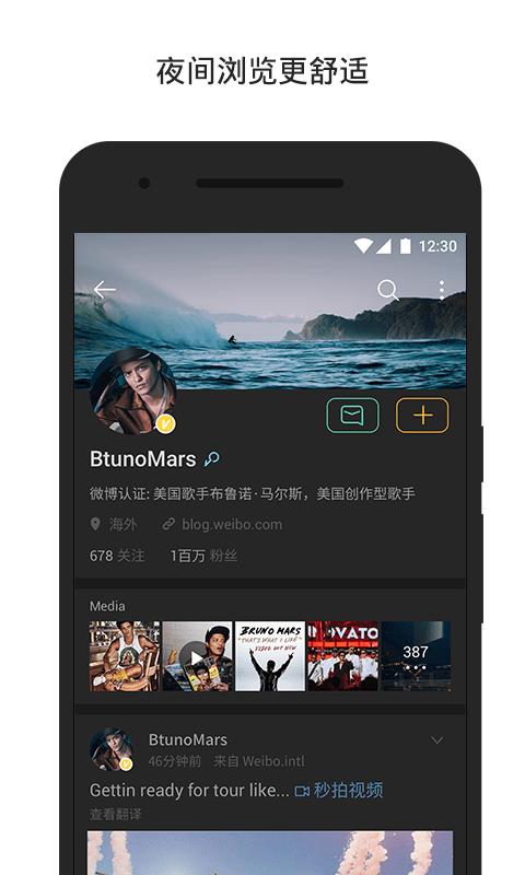 微博国际版APP是针对世界各地的安卓用户开发的国际化客户端,您可以在这里轻松的罚下你世界上每一个有趣的新鲜事物,了解更多精彩的瞬间;使用APP发表自己的生活小动态,让全世界都可以听见您的心声,给您的生活加点料,您的生活可以变得非常的有趣;为了让更多的用户可以了解国际新鲜事,APP自带来非常精准的翻译功能,轻松的让您了解其他国家的用户发布的内容,您还可以在线与其他国家的用户进行实时的文字聊天,交流不在有任何的阻碍,用户可以体验到更多的交友乐趣;拥有许多热门的板块,包含了热门微博、热门视频、搞笑视频等等,给您的生活增添更多有趣的色彩。