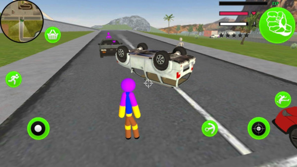 2、你将被展示成一个火柴人杀死恶霸的样子。这个场景也是3D的,玩起来会很有趣。