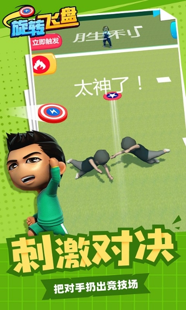 旋转飞盘是一款趣味休闲益智类游戏,游戏的画面很是精致,在这里玩家可以操控着角色进行战斗,游戏中为玩家呈现飞盘进行挑战,很是考验玩家的操作性,可以和其他的玩家来进行比拼,游戏操作简单,玩起来很是有趣,需要投掷飞盘打击对手,赢得比赛就是可以得到奖励,旋转飞盘游戏的画面非常细腻,游戏中玩家进行飞盘投掷挑战,很是考验玩家的操作性,你可以和其他的玩家来进行比拼,有兴趣的快来下载旋转飞盘体验吧。