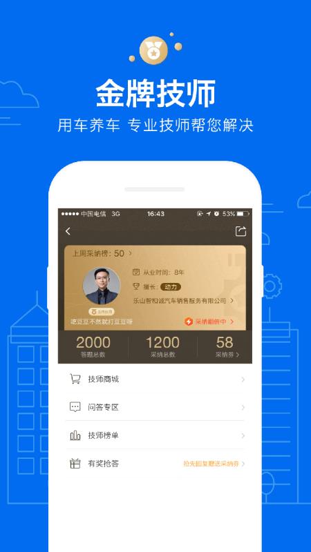 4、专业技师,车主可以选择任意技师为自己养车、提问技师问题;