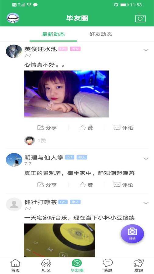 4、每天的心情在这里都是可以和好友分享的