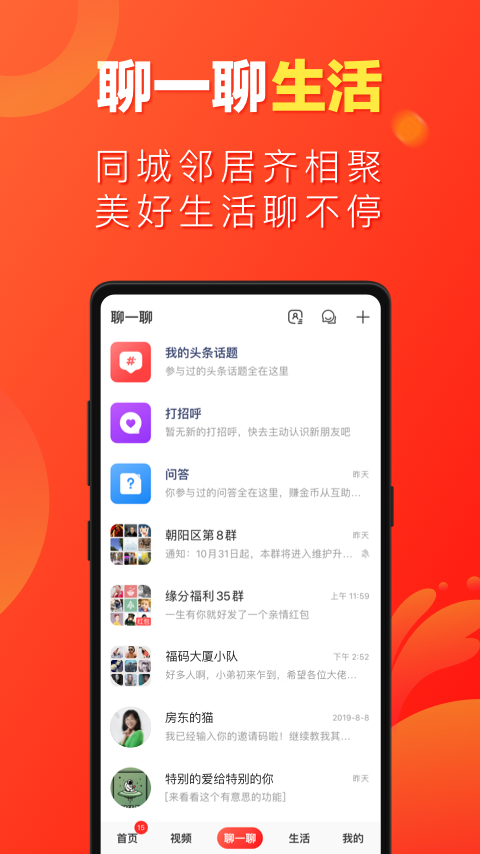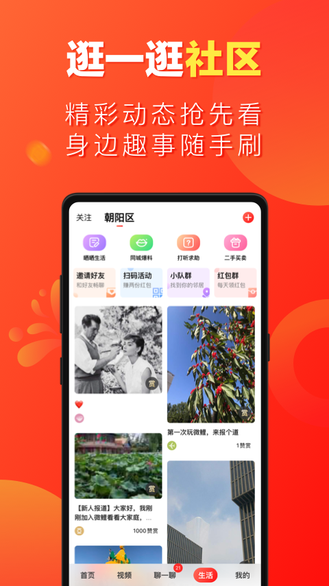 【同城邻里齐相聚】掌握同城新动态、畅聊邻里美好生活。邻里小区互帮互助,合作共赢红包奖励;