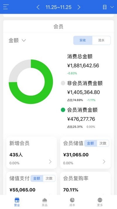 3、你可以根据自己的实际需要,选择不同的视图模式,自定义日期时间切换,对经营数据能够完全把握。