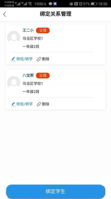 绑定学生,如果学校班主任在此绑定本班学生的话即可在线处理学生转学和转班的事务;