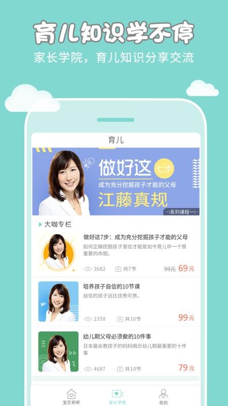 超多的育儿知识这里学不停,家长学院还可以与更多家长互动交流;
