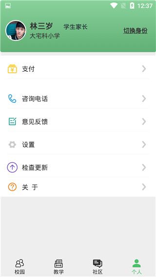 学生考勤: 考勤信息实时推送,让家长实时掌握学生出入校动态 。