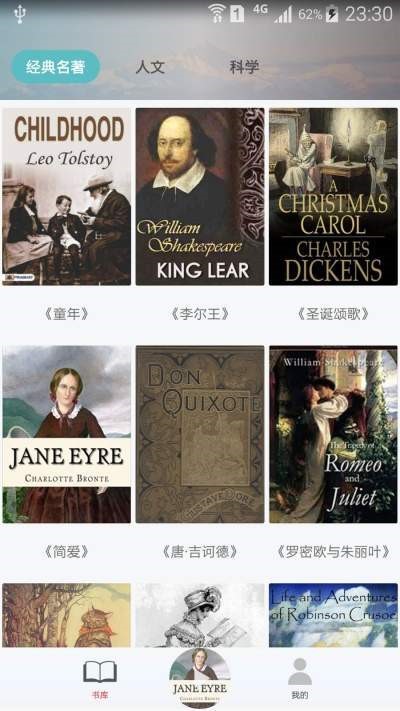 4、经典英文名著的有声阅读,部分有提供中文对照翻译;