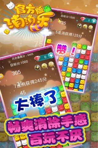 天天消消乐宠物版一款休闲益智类的消除,工作压力大的我们闲下来的时候需要找点游戏来消遣一下,开心消消乐这款三消游戏的画面设计非常的不错,Q萌的游戏画风让你瞬间心情超好,消除游戏中的经典。