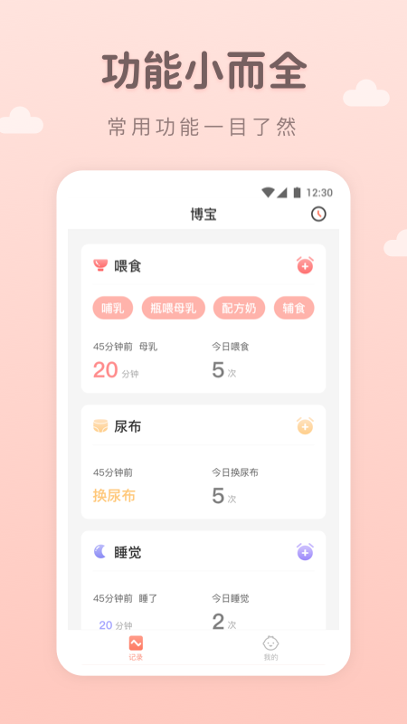 3.可以记录每天喂食、换尿布、睡觉的次数,以后就可以用来查询历史了;