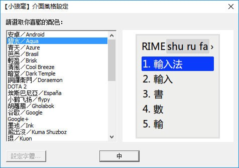 小狼毫,讹称小狼毫繁体字输入法,为中州韵输入法引擎的 Windows 版本。其扩展性较强,内建多种输入方案,但不易于普通用户上手。中州韵输入法引擎(又称Rime 输入法),由佛振编写的开源中文输入法,基于同一个核心架构,该输入法分为三个发布版:Linux 发布版“中州韵”(英语:ibus-rime)、Windows 发布版“小狼毫”(英语:Weasel)、Mac OS 发布版“鼠须管”(英语:Squirrel)。目前项目网站设在Google Code,源代码托管在GitHub