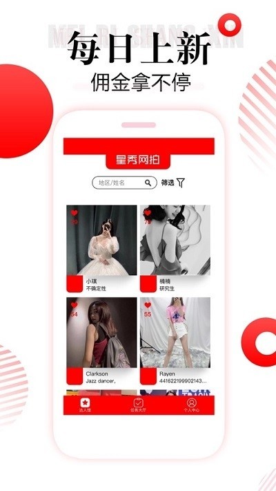 2.普通用户上星秀,找专业人士,拍美美片,轻松接单,在家做商拍