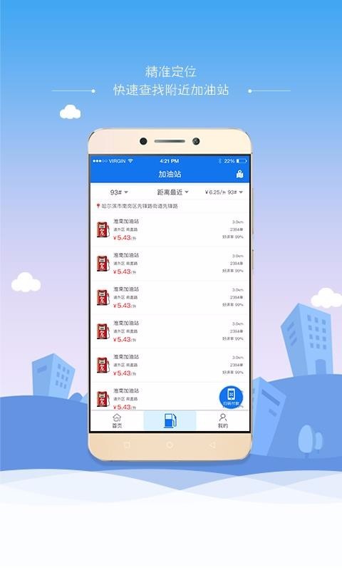 可以自由切换列表与地图,在线查看附近所有加油站;