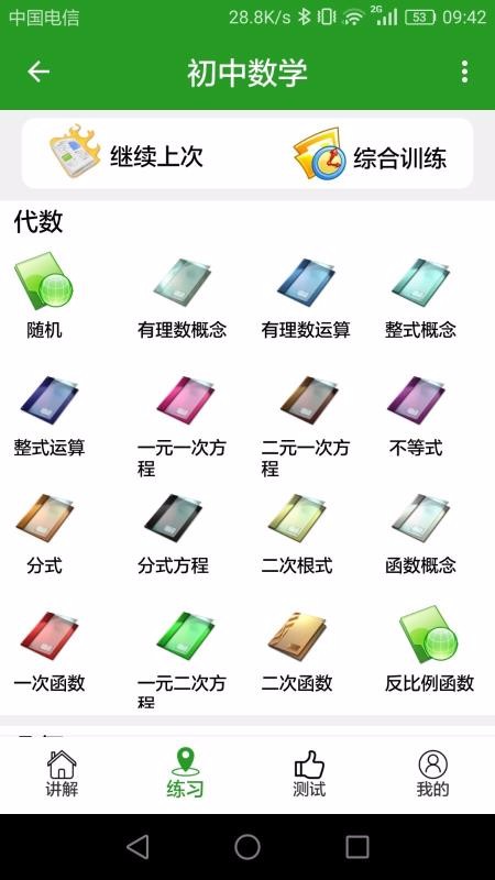 3、选择综合练习的方式则可以获得随机的题目,初一至初三的数学题都能在此找到;