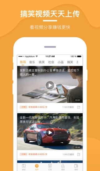 2.搞笑视频天天看,看一次赚一次;