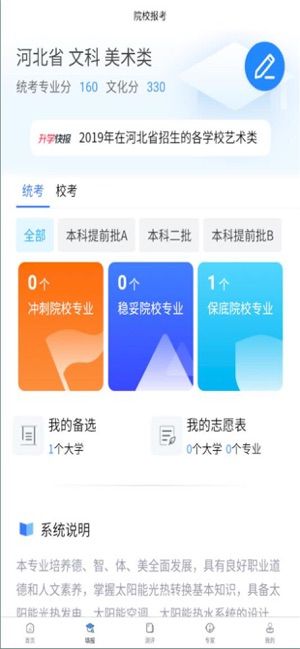 1、轻松的完成你的艺考填报志愿,帮助广大的考生获得优质的都院校推荐;
