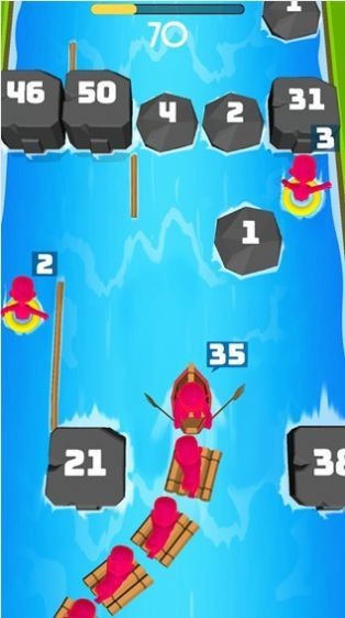 玩家的木筏队将有一个起始号码。每当有人成功获救时,这个数字就会增加,但是一旦跌倒,就会失去一定数量的成员。因此,玩家需要尽可能地保护团队成员并选择更安全的前进路线。当然,有些奇怪的物品会随机出现在路线上。合理使用这些道具可以极大地提高穿越关卡的便利性,并保护尽可能多的幸存者。在这个独特新奇的玩法中你将能拯救更多被困在水中的橡皮人,它们会成为你的队友并一起突破更多的障碍,你能选择更加安全的路线来通过更多的关卡,在这里展现你灵活敏捷的操作突破更多的难关。