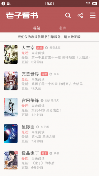 4、方便的书架管理,最新章节提示,追书如此简单