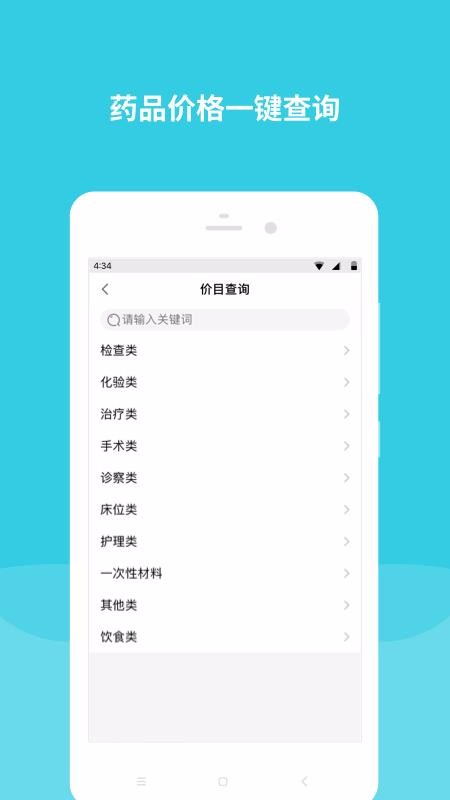 2、详细的药品价目信息分类,直接输入相应的关键词即可进行快速查询;