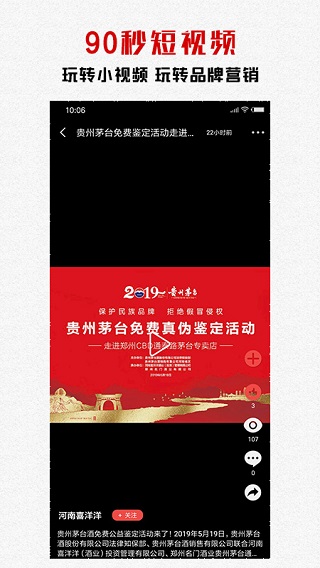 90秒短视频:平台实现当下火爆的“小视频”功能,让品牌曝光场景化、可视化,拉近品牌或商品的距离。