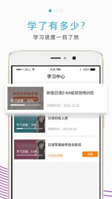【学习进度】打开未名天日语网校app查看,购课、学习进度一目了然。