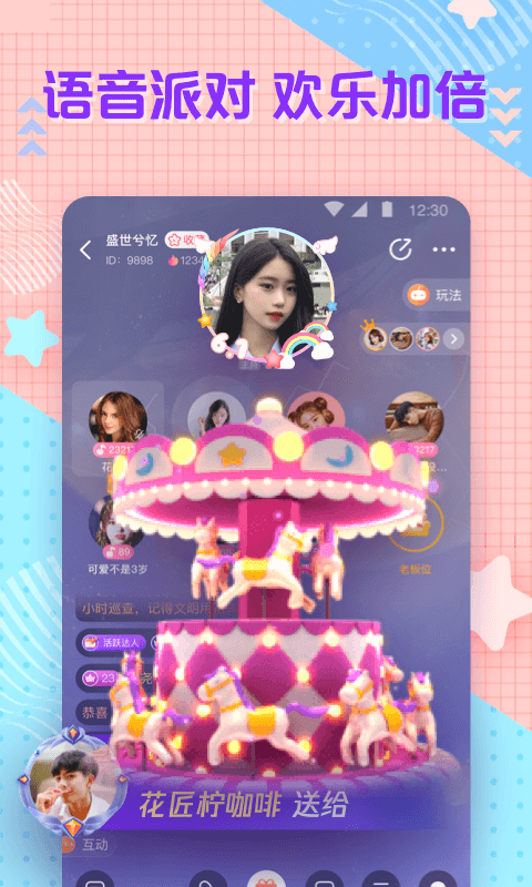 2、开启多人语音聊天室,随时随地都能找到陪伴您的那个人,一起互动娱乐更加欢乐。