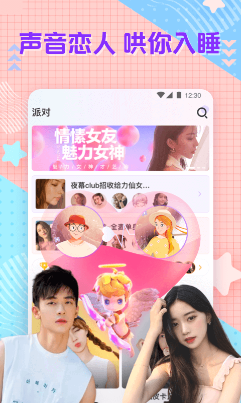 2、通过语音进行交友的平台,汇集各种各样好听的声音,用户可以根据声音进行交友。