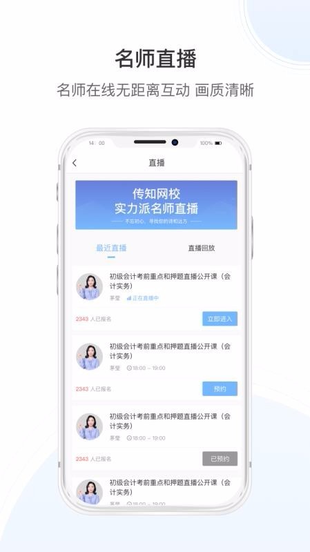 传知教育app是一款有着丰富多彩教学资源的教育云平台,这里教学资源涵盖了金融投资从业资格证、财经类、职业资格证书类等几种资源,无论你也是提前准备报考教师资格证书或是会计证书都能获得相匹配教学资源的文化教育;专业的在线金融培训机构,提供最便利的教学模式,随时随地学习,不受时间和地域的限制,最有保障的学习平台,帮助您顺利通过考试。服务平台提供课程内容服务项目,这里有直播与回看课程内容能够学习培训,网上课程的优点取决于能够向教师提出问题从而得到回应,而回看课程内容的优点取决于能够随时随地收看学习培训。