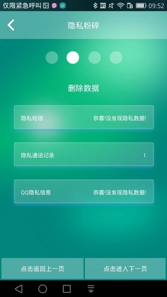 2、彻底消除手机隐患信息,包括两种消除方式,一是对手机中的未删数据可进行选择性消除,二是对手机中的已删隐患数据进行一键彻底粉碎消除,消除后的数据无法被恢复窃取。