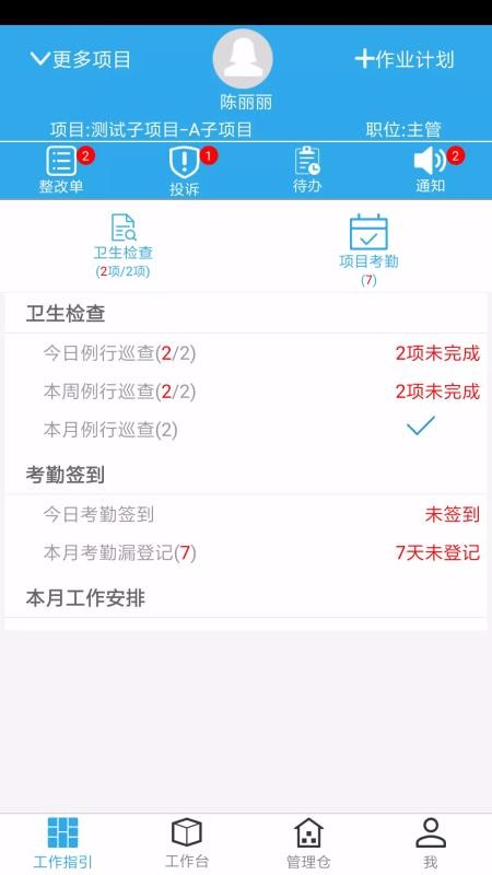 2、工作台中有着各种详细的人事与考勤管理还有各种公司项目管理等;