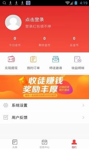 看资讯赚金币,轻松赚取零花钱。邀请好友有惊喜,金币收益领不停。时段奖励签到金币拿不完;任务多样有趣,新手任务、日常任务刷不停。