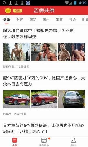 打开芝麻头条APP,可以在主页面中查看热点新闻