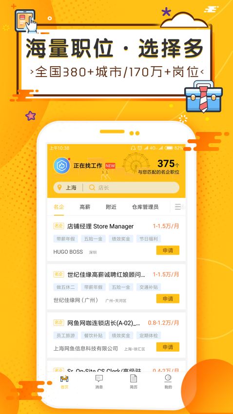 3、快速搜索,根据不用标准精准搜索合适职位;