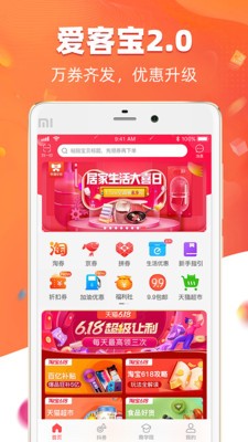 爱客宝app是一个集合省钱与赚钱的网购应用,用户自己使用可以省钱,分享商品可以赚钱。既能够在此;领取淘宝、天猫、拼多多、京东等电商平台的内容优惠券,又能够通过分享这些商品的优惠券达到赚钱的目的,非常的实用。用户可以把这款用用当做一个智能导购的工具,因为这款应用不仅可以带领你找到折扣的品牌商品,还能帮你找到具有大额优惠券的商品,通过使用优惠券购物可以节省一大笔钱,而且,为了帮助用户赚钱,这里提供了免费的商品推广素材,可以一键分享到社交圈,通过吸引客户下单达到轻松赚钱的目的,邀请好友的话也能赚钱,还在等什么,马上下载吧。