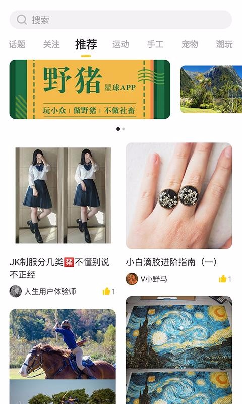 野猪星球APP是一个兴趣爱好分享交流平台,在这个平台上面聚集了非常多有着不同兴趣爱好的用户,大家随时都可能非常找到和自己有着同样爱好的人,而且在这个平台上面还能够给大家提供多种感兴趣的优质好物,都是根据兴趣进行分类的,让你可以更加轻松的在这个兴趣圈子当中找到自己需要的小众物品。你可以轻松的通过这个平台寻找和你有着相同爱好的人,成为好友,也可以通过这里购买自己喜欢的商品,在这里能够按照大家的兴趣对商品进行分类,物品的优惠信息也会呈现出来。