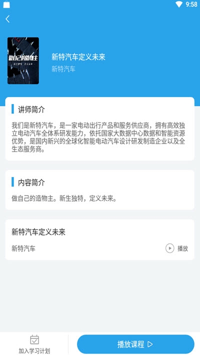 新特商学院app是如今专门为汽车行业带来的一款线上教育学习手机软件,随着现代社会人们经济条件的发展,小汽车在市场上逐渐增多,所以汽车行业也是非常热门的就业行业,今天小编为大家推荐一个相当不错的学习app,用户们可以在平台里面来了解到各种车辆营销方面的技巧,各个课程都有。