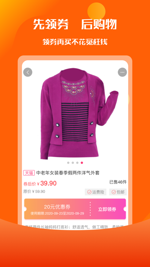 1.每天都会定时更新上百款优质商品的购物优惠信息,专业买手推荐,性价比更高;
