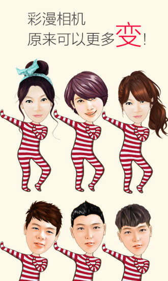 彩漫相机app是一款手机拍照软件,彩漫相机app能够帮助你拍出各种各样的相片,彩漫相机app甚至能够帮你拍出彩色漫画的效果,只要一键,自动定位五官,自动检测最适合的发型、脸型和背景,可以把你的照片面部截取下来搭配其他的卡通元素创作出各种卡通形象,个人形象与彩色漫画的完美融合,快来下载吧。