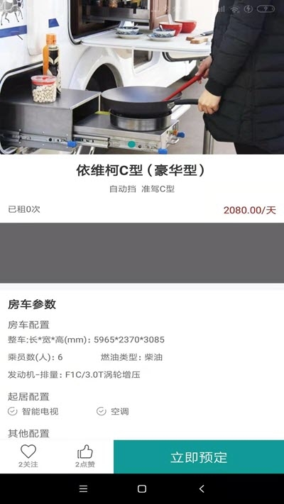 1、平台里面各种类型的房车都有,大小不同价格也是不一样的,大家可以按照需求来选择;