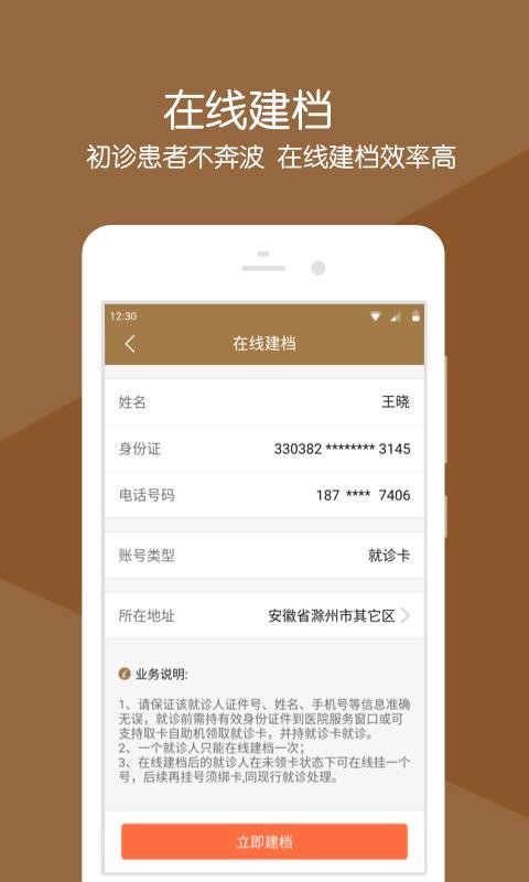 2、为用户提供在线建档功能,让用户可以更方便的到医院进行治病诊疗;