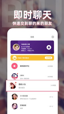 Biu社交是现在00后的新社交神器噢,能够查看各种的匿名朋友圈还能够评价别人噢,全部都可以匿名,可以在一个陌生的平台来说出自己的真心话,喜欢的朋友赶紧来下载Biu社交吧!BiuBiu app也是一个聚集许多好看用户的社交应用,各种可爱的朋友都在这里,让你能够遇见更多有共同话题的小伙伴,随时随地聊天互动。BiuBiu app看脸交友,你可以在这里认识很多高颜值的小哥哥、小姐姐,找到最令你心动的那个。