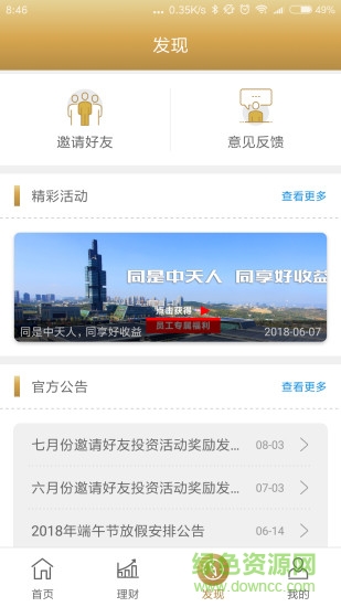 金黔理财app是中黔金交官方唯一移动互联网理财平台,让投资者能够随时随地享受优质资产证券化开启的互联网理财时代,让您的财富更安全、便捷的增值,这里有着非常是欧尼的功能,通过它可以给用户带来一个有着一切安全的理财体验,官方公告实时更新,精彩活动在线查看,超多理财产品任你选择,投资门槛低收益稳健,平台交易安全有保障,欢迎来下载!