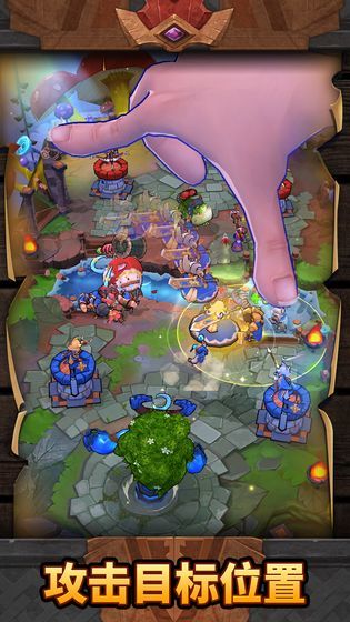 2、帮助冠军部署迷你士兵,通过用手指将他们扔到战场,并在战斗关键时刻指导他们施展技能来对抗敌人