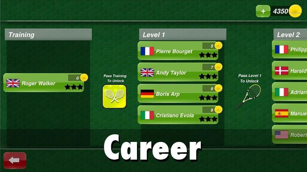 真实网球是一款体育运动类的游戏,现场的一个职业球员在世界巡回赛唯一的目标就是成为头号的生活,该游戏内置购买关卡也免费开放,这款老牌的网球游戏,以其真实的游戏体验和良好的操作手感著称,支持多人wifi对战,还可自建游戏室与朋友一同体验真实的网球游戏。