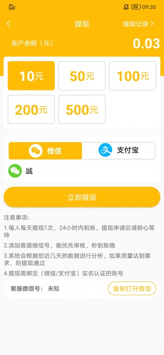 10元或以上的永久提现,支持微信或支付宝提现,提款将在24小时内收到,信誉稳定,将收取非作弊现金100%的提现;