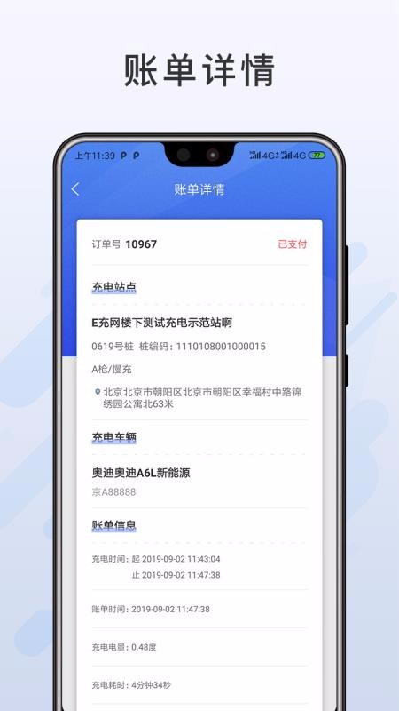 详细的账单详情数据实时查看了解,便于更好的了解充电情况;