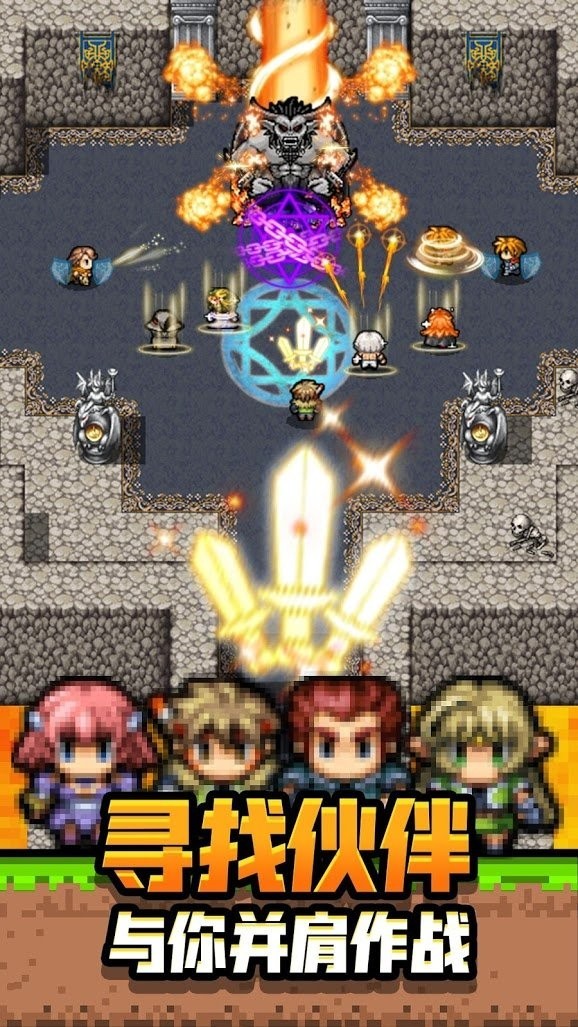 2、升级勇者,招募伙伴,挑战魔王军团,拯救世界