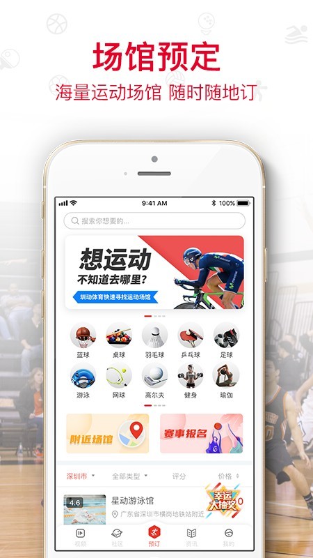 3、圳动app用户想练什么都可以,还为用户提供了场馆预定功能;