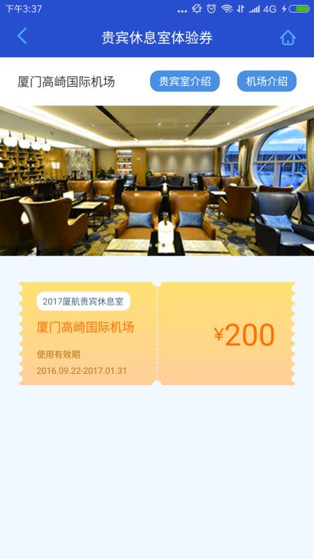 4.领取相应的贵宾休息室体验券,体验券消费抵扣